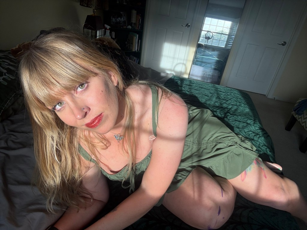 I am a faerie woman with sunflowers on her brow, made with patient fingers so that I might have the crown I deserve, though I ask not for worship, only…no. I mustn’t say. Aphrodite running her hands through her hair, laughter like sparks and fireflies in the air. When she twirls beside me, I feel a breathless rush of desire, her swan-like throat bared to my lips. She pirouettes away, beauty embodied, and I am whole. Right? I am… right?