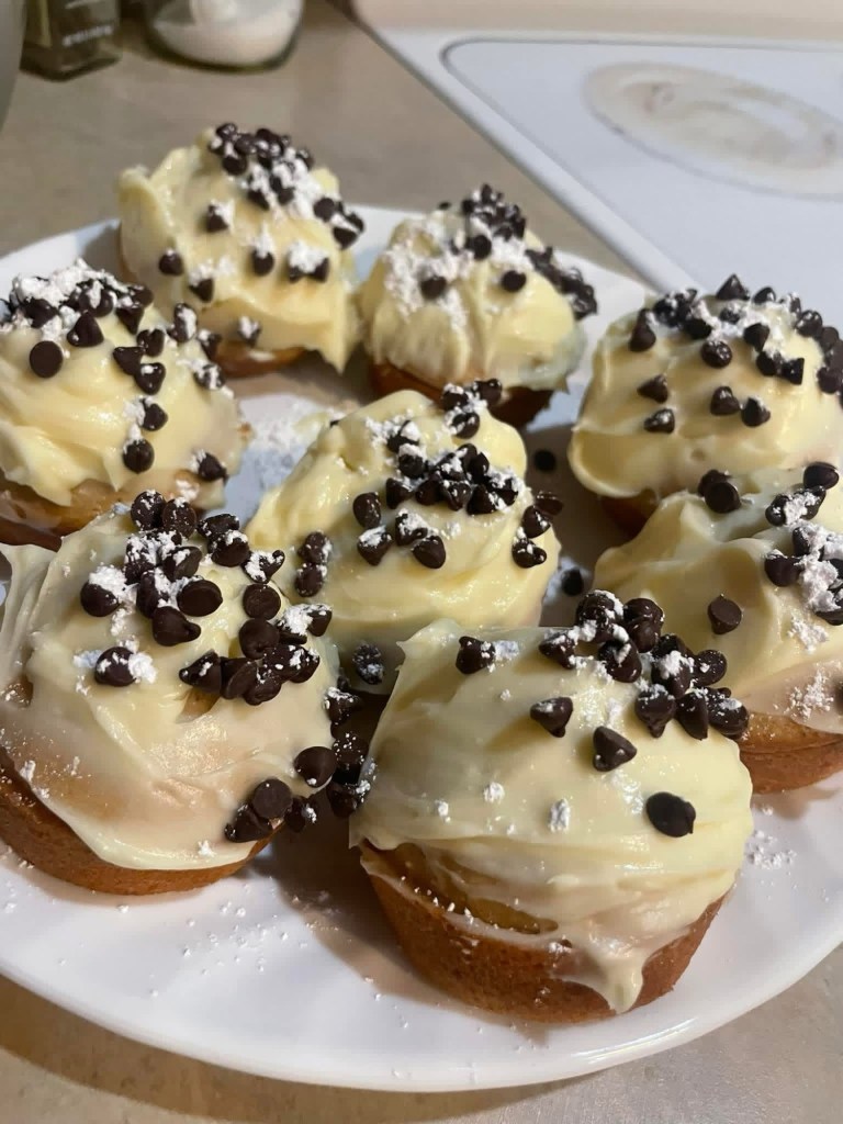 Cannoli Cupcakes π§ Peanut butter kiss cookies Brown butter molasses cookies with cream cheese icing (I came up with this one π₯Ήπ)Bread pudding in NOLA cooking class Banana nut bread with Nutella! Jewish apple cake – every year for my daddyβs birthday.White chocolate macadamia nut cookies! Pumpkin pie priestess cookies (came up with this idea myself as well ππ)Strawberry shortcake Reeseβs cupcakes π§ with peanut butter buttercream icing.Chocolate chip cookies with sea salt